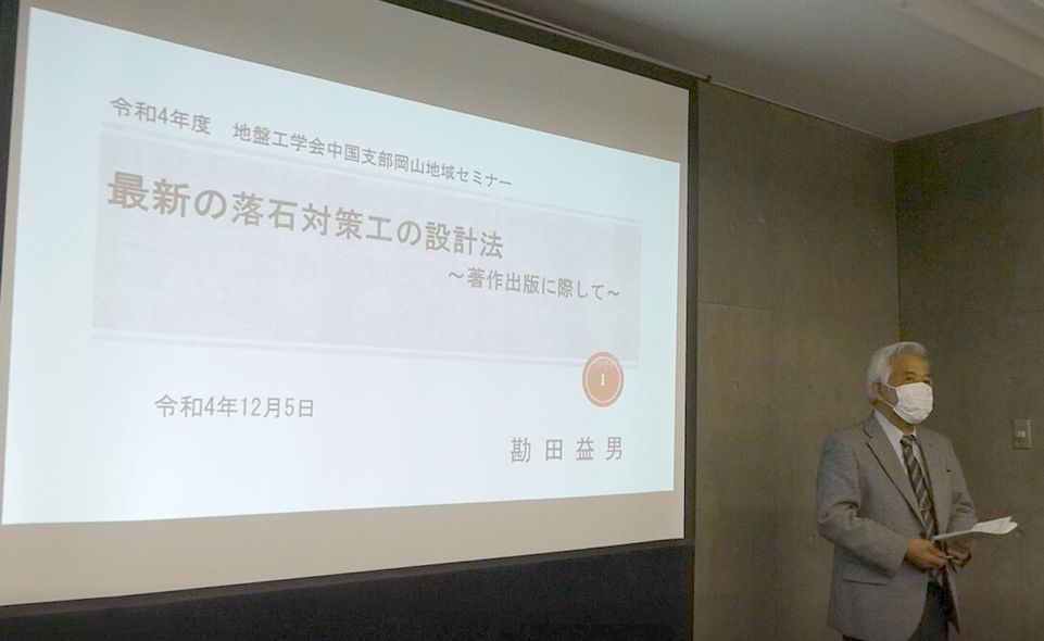 講演会のテーマ「最新の落石対策工の設計法~著作出版に際して~」 講師:勘田 益男様