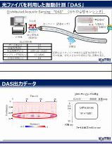 新しい物理探査手法は「Distributed Acoustic Sensing」と称して、探査測線上に光ファイバーを往復に設置して、光ファイバーそのものがセンサーとなって、温度変化や振動を計測検出するというものです。伝播途中の光が結晶粒子の歪みによって散乱し、入射光と跳ね返ってきた散乱光とに差異を生じ、その差異から歪み発生の位置や振動特性等を推定しようとする探査手法です。